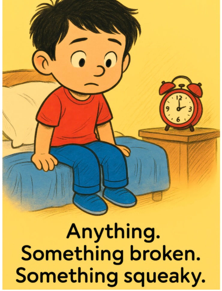 A leaky faucet? Easy. A slow-growing plant? No problem. Even the moon in his dreams seems like something he can patch together if he just tries hard enough.