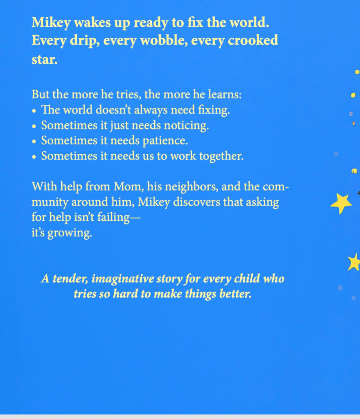 By the end of the day, Mikey learns a lesson that’s gentle, funny, and surprisingly wise: